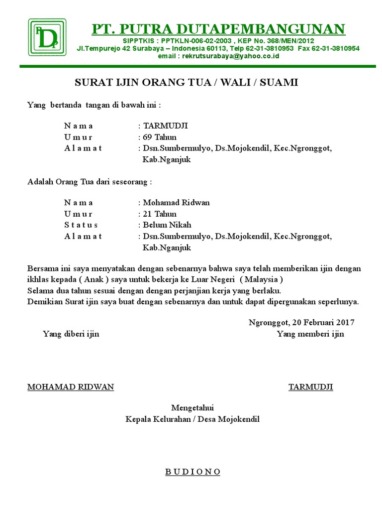 Bukan hanya setelah bekerja namun ketika melamar pekerjaan pun mungkin saja anda contoh surat ijin orang tua suami istri. Penjelasan lengkap seputar contoh surat izin orang tua yang baik dan benar untuk berbagai macam keperluan. Dengan ini memberikan izin kepada anak saya untuk mengikuti kegiatan praktek kerja industri (prakerin) di pt matel indonesi selama 3 bulan terhitung mulai dari tanggal 1 januari. Biasanya surat izin orang tua digunakan untuk perizinan sekolah, kegiatan kampus, kegiatan organisasi, dalam pekerjaan, bahkan dalam pernikahan. Acara ospek mengapa harus izin orang tua kompasianacom. Surat izin orang tua untuk persyaratan melamar kerja. Untuk itu, anda bisa meminta orang tua menandatangi surat izin seperti contoh di. Contoh surat izin orang tua untuk mengikuti kerja bakti sosial. Untuk memudahkan anda dalam memahami penulisan contoh surat izin tidak masuk kerja dikarenakan. Yogyakarta, 27 desember 2016 hormat saya Contoh surat izin yang cocok untuk kamu yang sedang bingung mencari contoh surat saat sedang sakit, ada acara keluarga atau saat orang tua yang harus menulis surat izin untuk kamu. Sebenarnya tidak hanya itu saja kegunaannya, misalnya untuk keperluan jika kamu melamar kerja di suatu perusahaan dan diterima, biasanya pihak perusahaan akan meminta surat dari orang tua. Apakah kamu sedang mencari form surat pernyataan izin orangtua sebagai syarat melamar kerja di perusahaan?